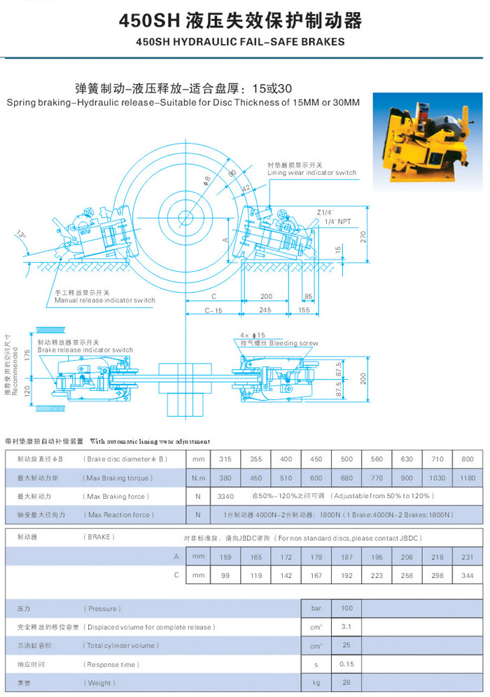 450SH液壓失效保護(hù)制動(dòng)器系列