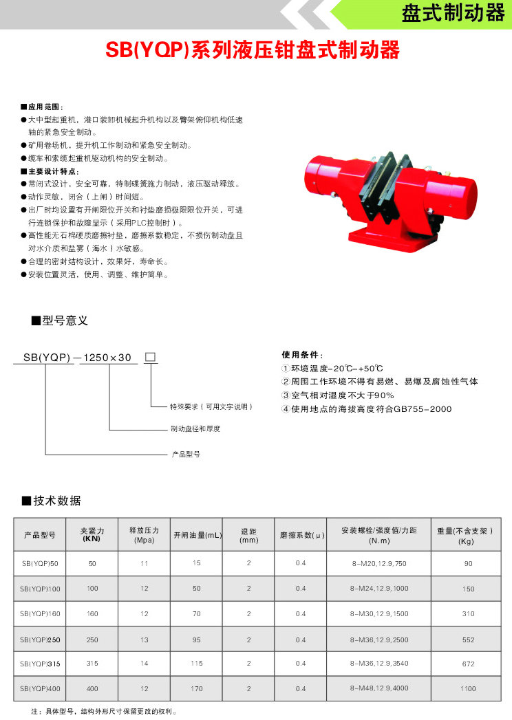 SB(YQP)液壓鉗盤式制動器