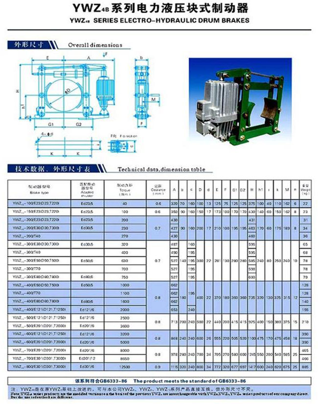 YWZ4B電力液壓塊式制動器