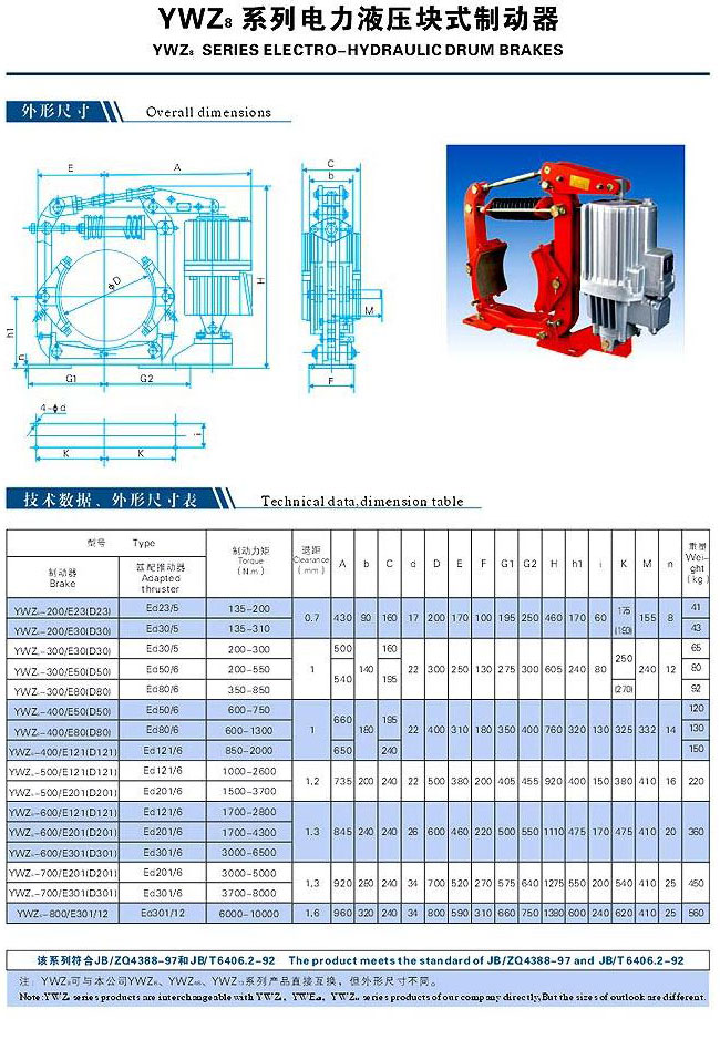 YWZ8系列電力液壓塊式制動器